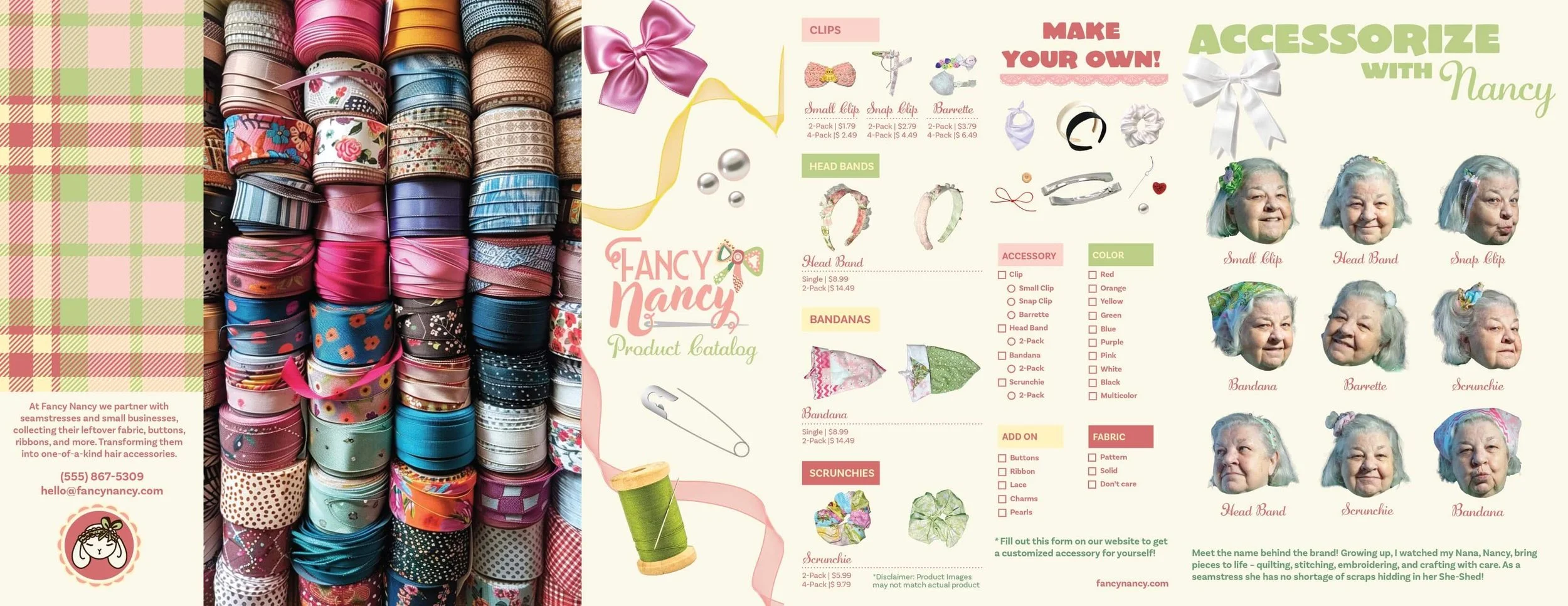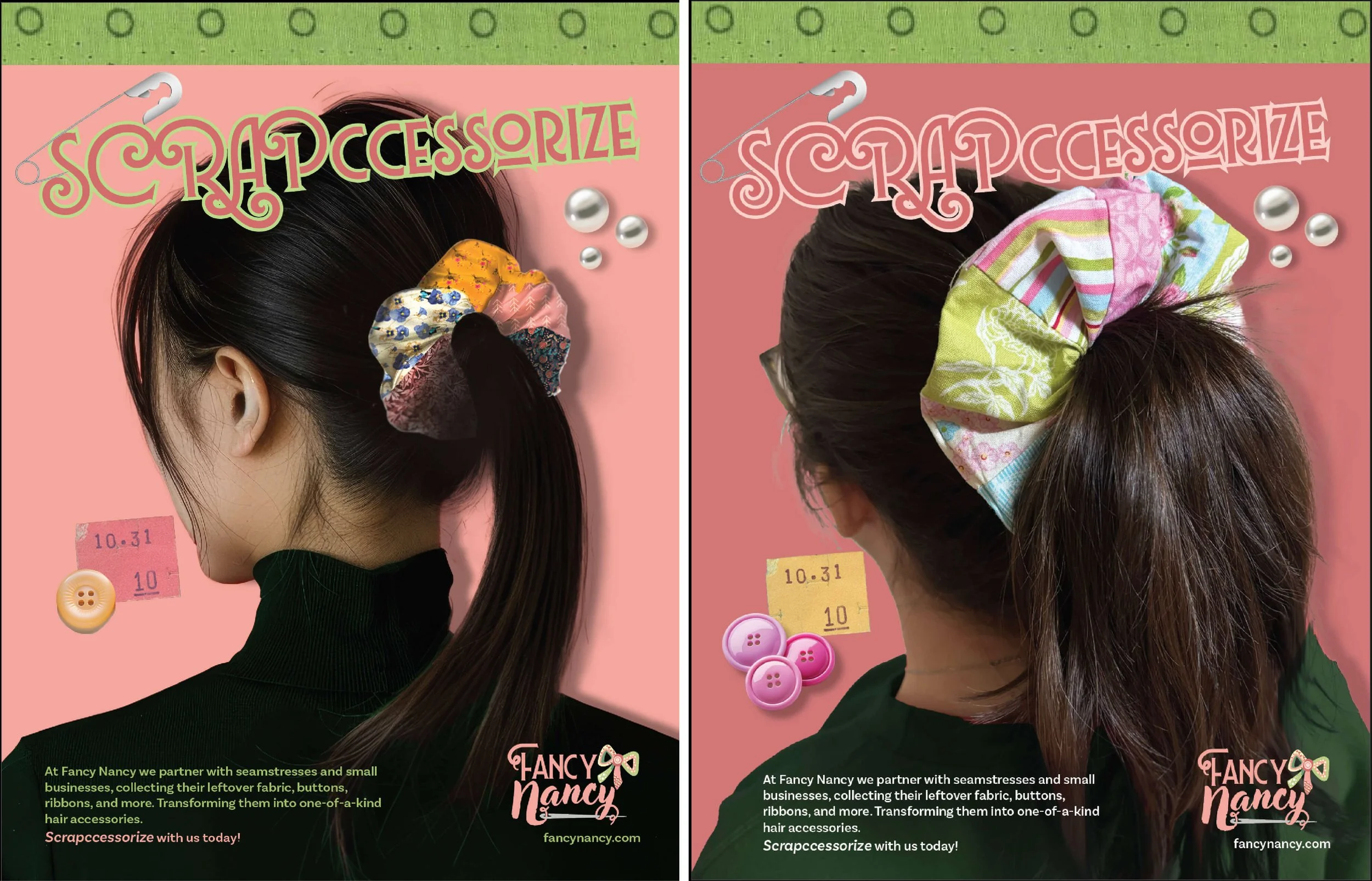 At Fancy Nancy, we turn fabric into unique, sustainable hair accessories by partnering with seamstresses and small businesses.