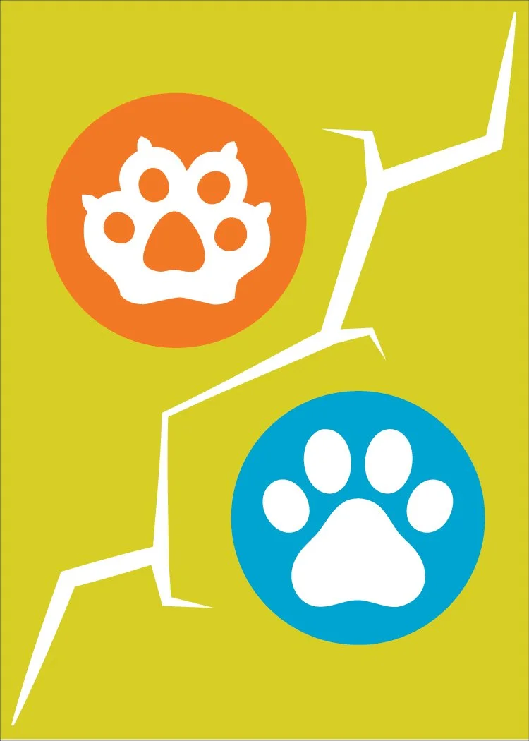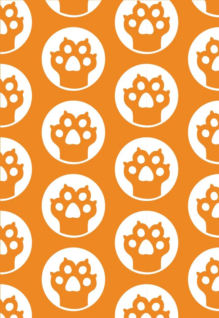 Patterns for the back of the cards utilize colors and paw prints designed by Herzel
