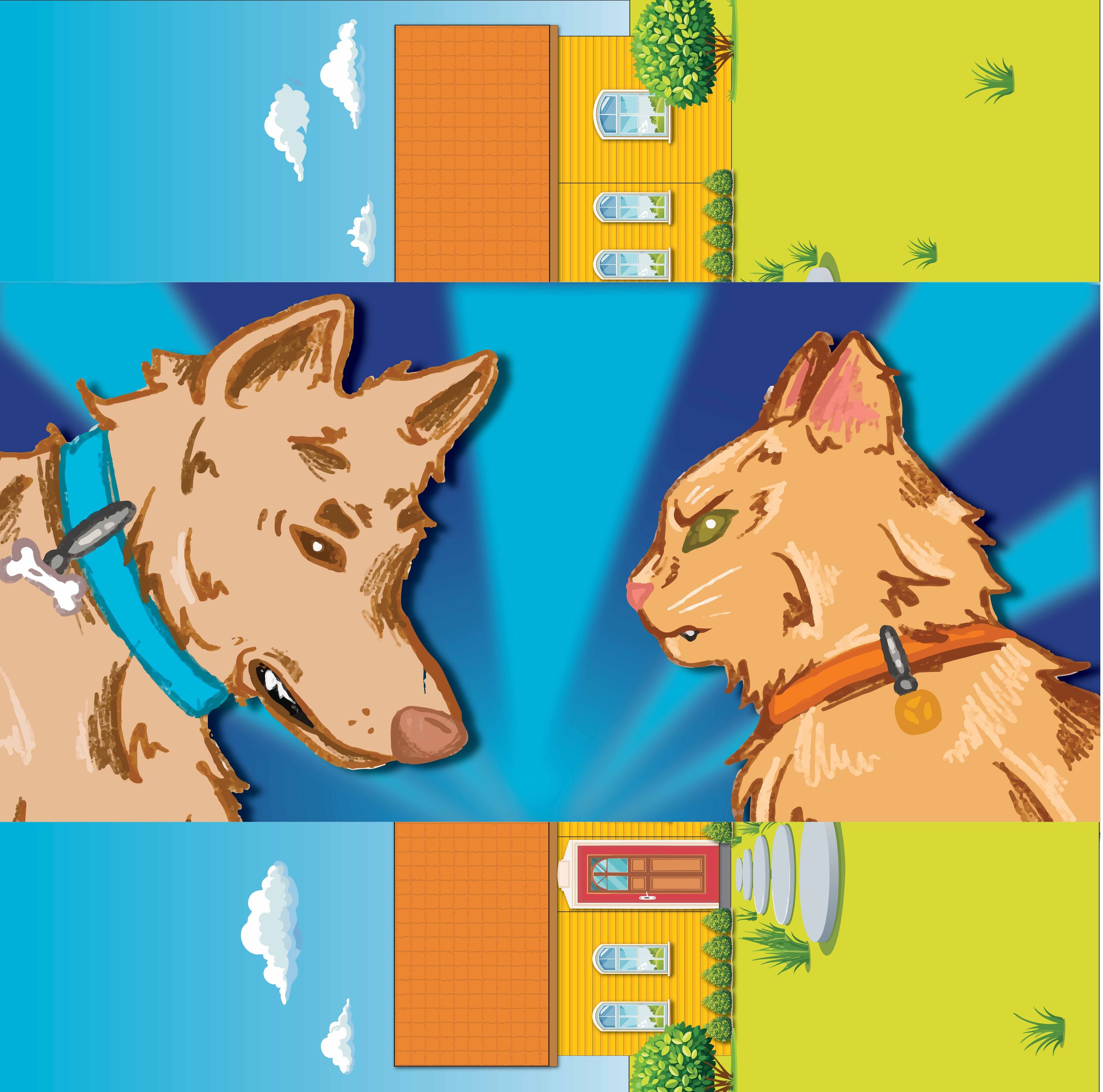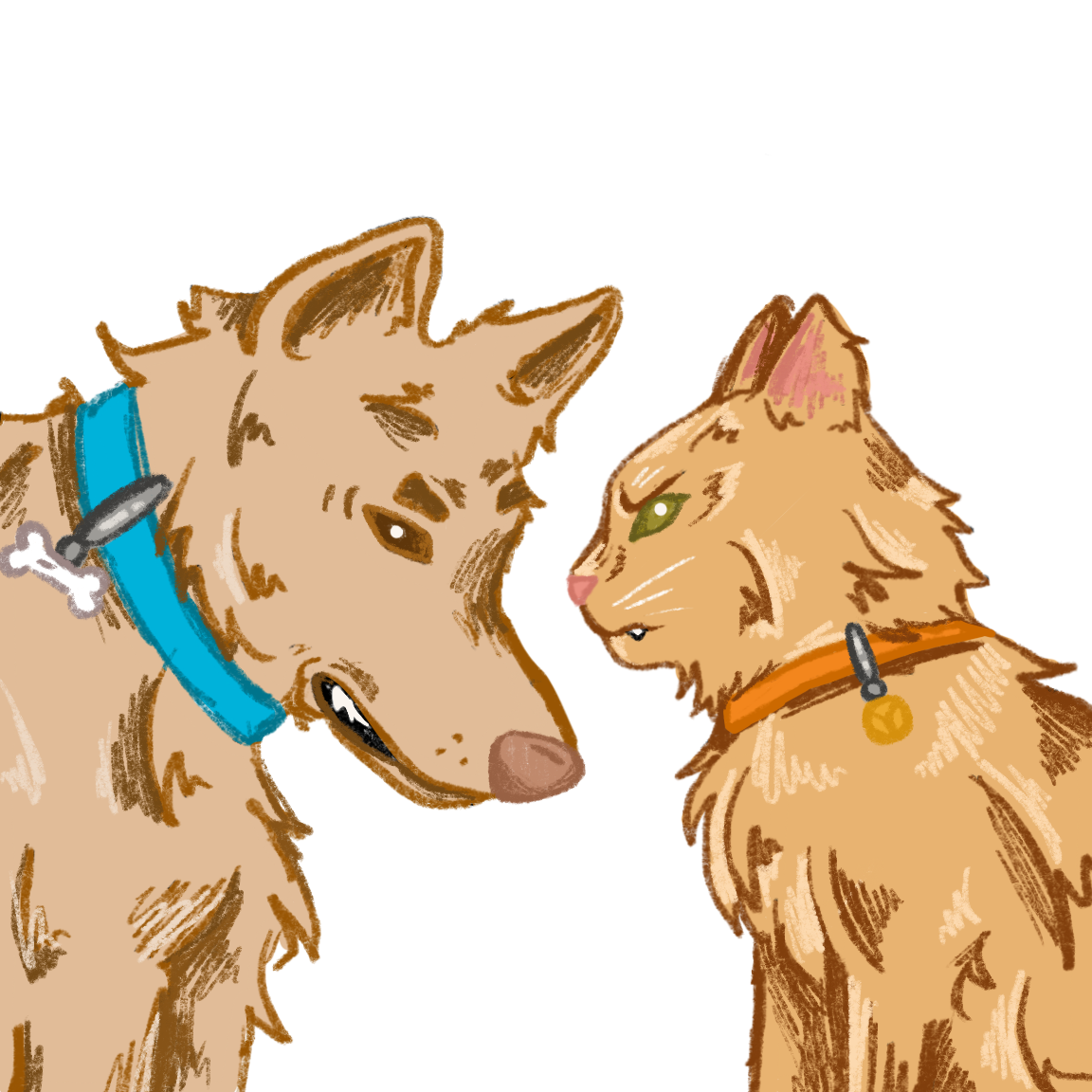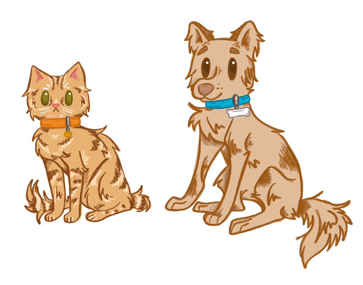 I illustrated these characters utilizing the blue and orange designated pet colors by the collars