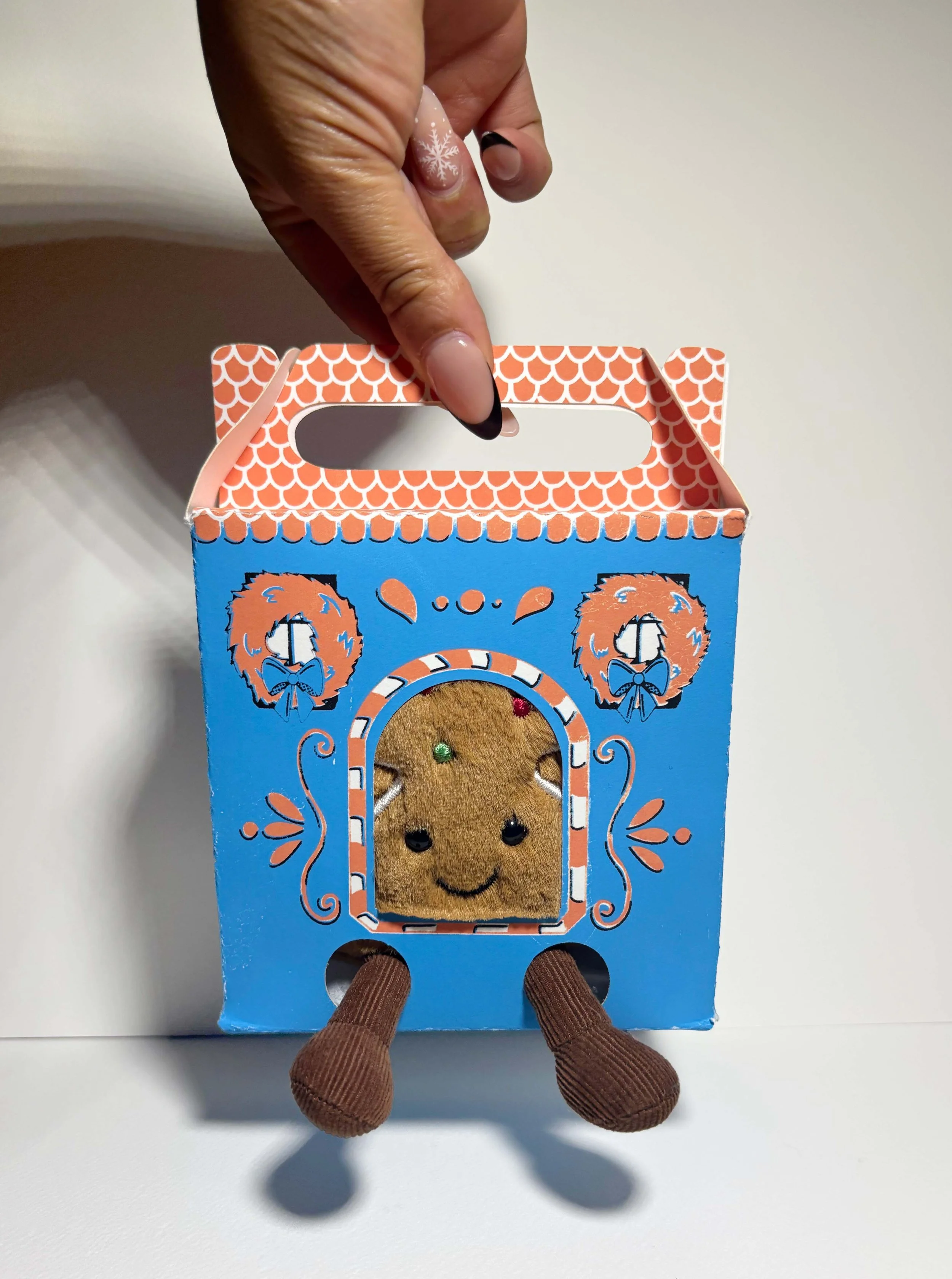 This project involves developing packaging for the Jellycat Christmas tree cookie plush, designed to resemble a festive gingerbread house. The goal is to create a polished mock package that presents the plush in a playful yet brand-aligned manner, enhancing both its holiday appeal and overall marketability.